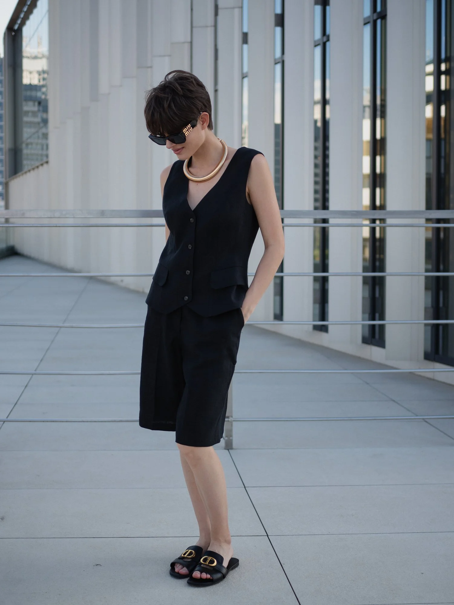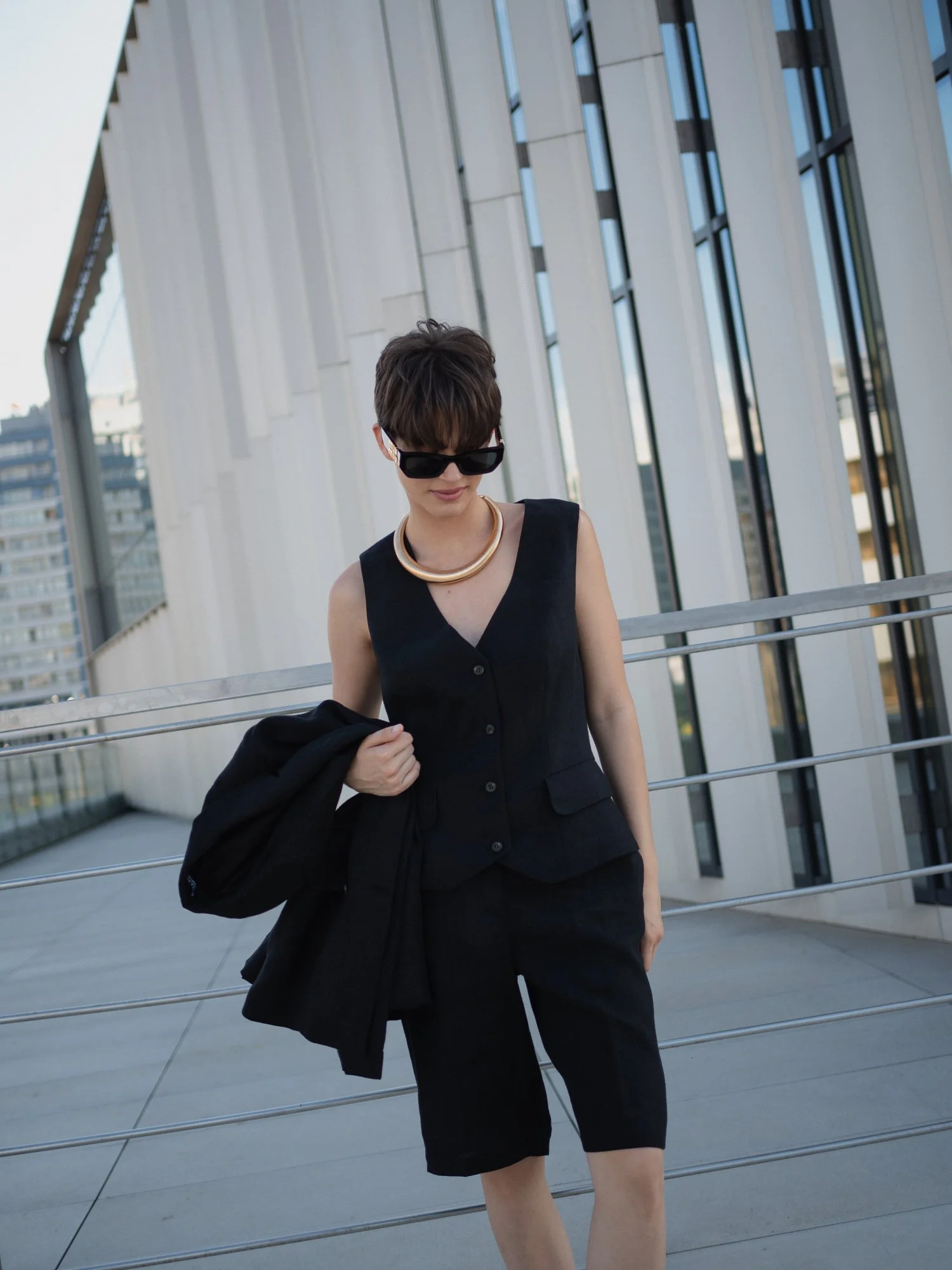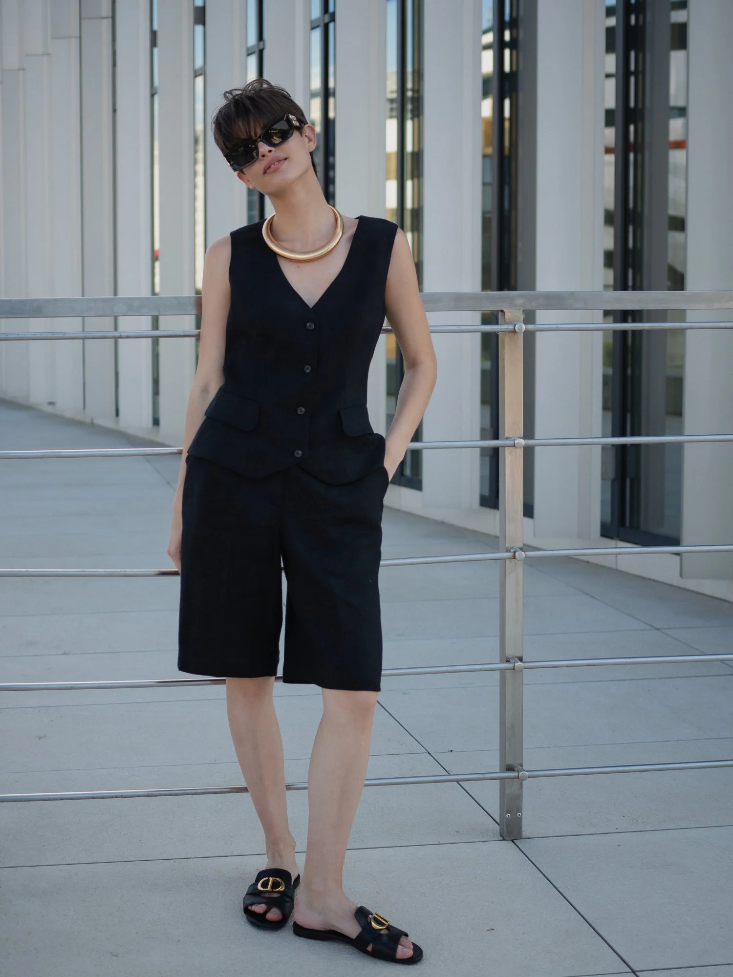 Шорты бермуды, жилет цвет чёрный XS/S