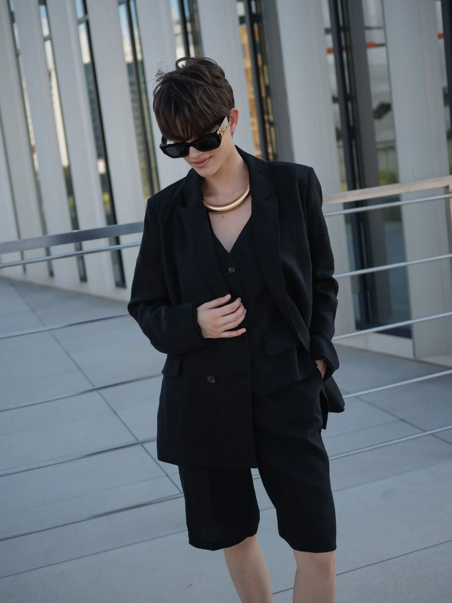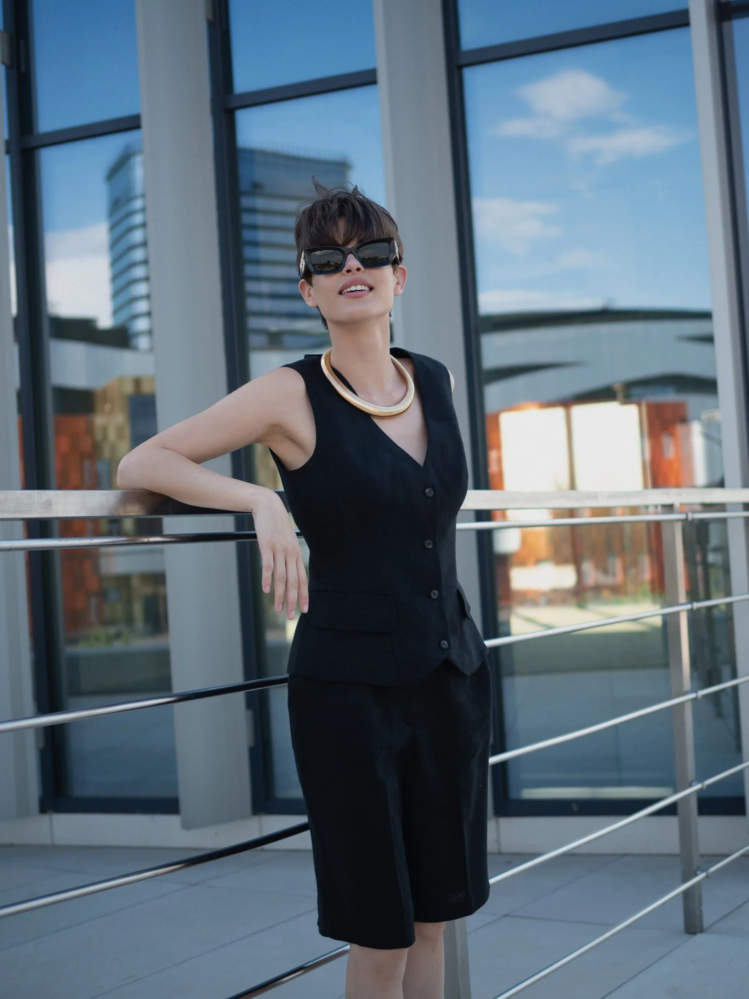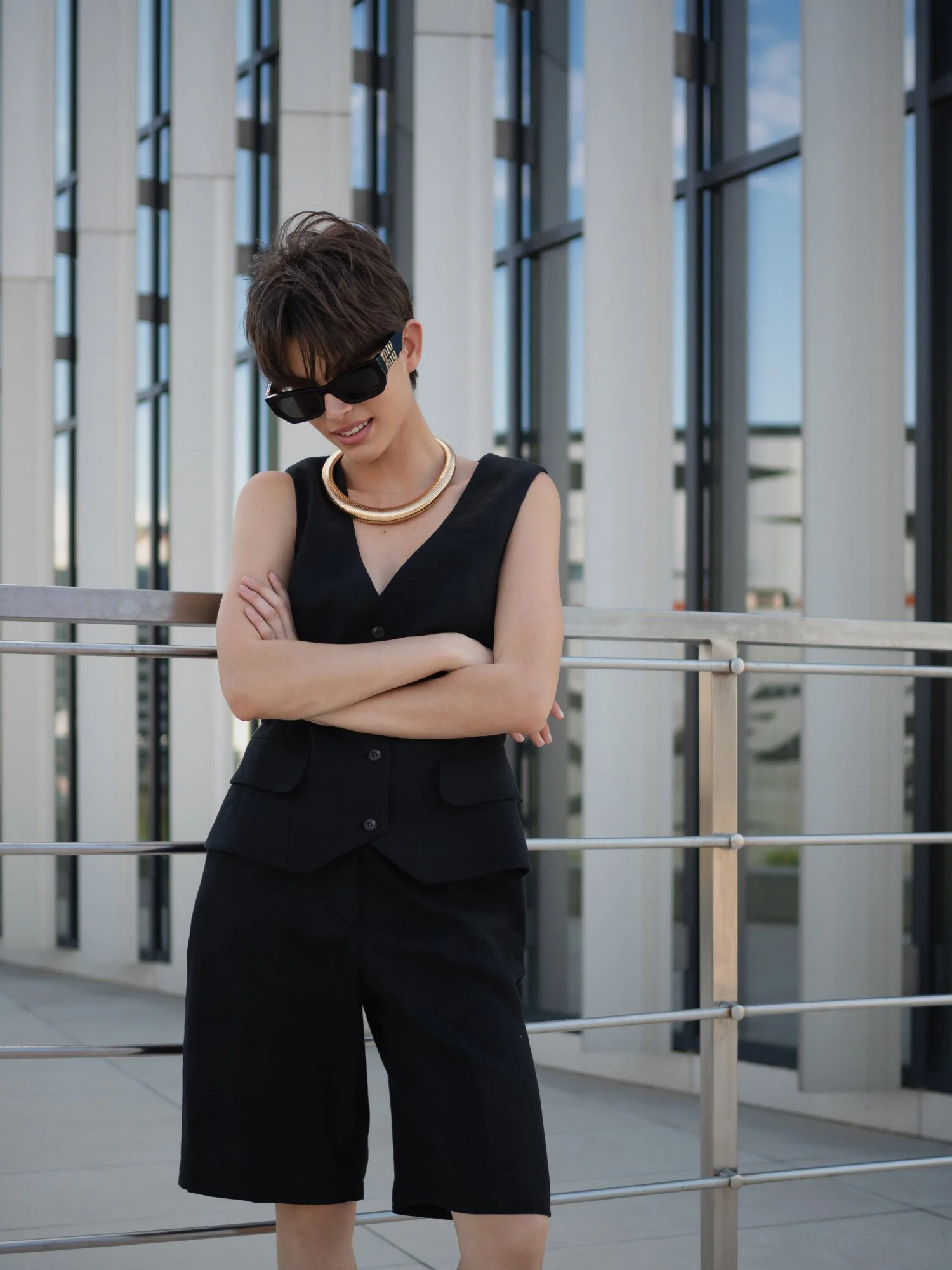 Шорты бермуды, жилет цвет чёрный XS/S